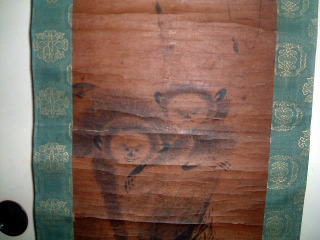 | "Enkou-Sokugetsu-Zu" (The image of the monkies trying to pick up the moon from the pond) ■江戸時代/作者不明 ■樹上の猿が、水面に映った月を取ろうとしています。その猿の愚かしさを人間自らに投影し、人間の愚かしさを自覚しようとするものでしょう。この絵の手法は、中国の牧谿にはじまり、日本では長谷川等伯の派に影響を与えています。 |